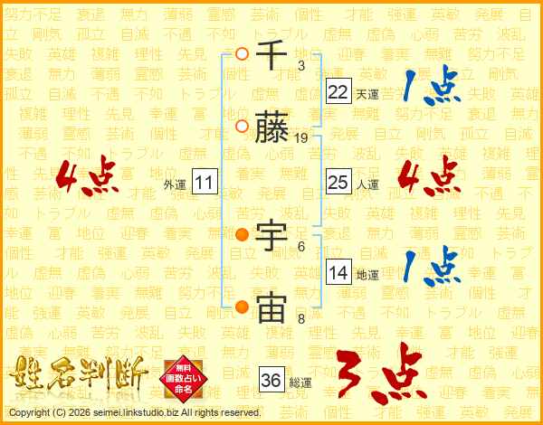 千(3画)藤(19画) 宇(6画)宙(8画)
