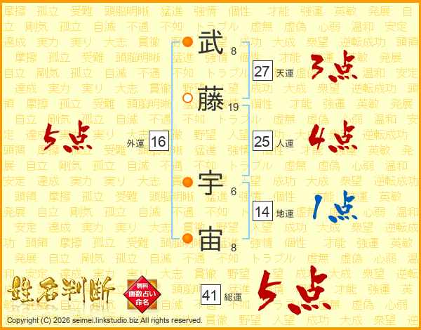 武藤宇宙さんの総運は41画の5点!