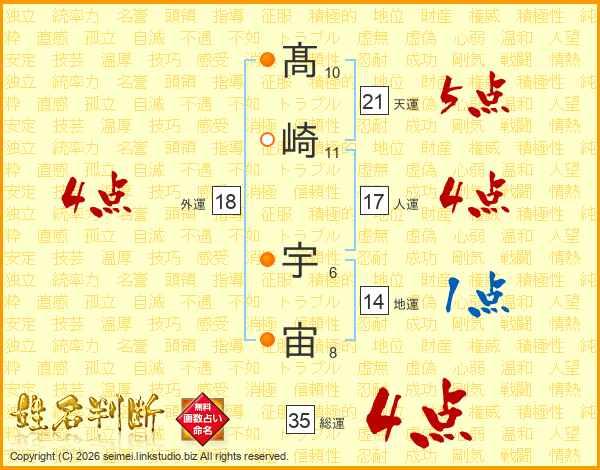 髙崎宇宙さんの総運は35画の4点!