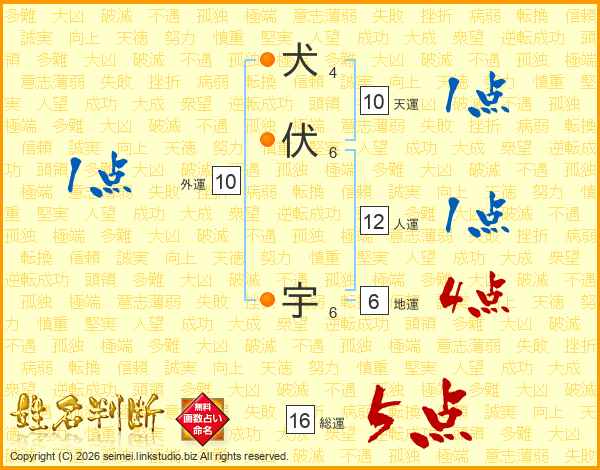 犬伏宇さんの総運は16画の5点!