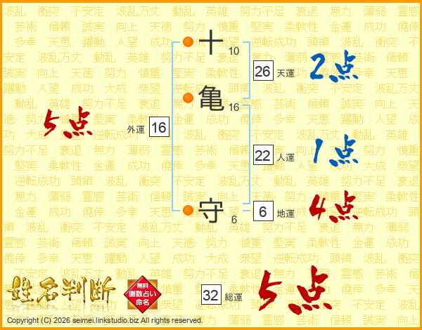 十亀守さんの総運は32画の5点!