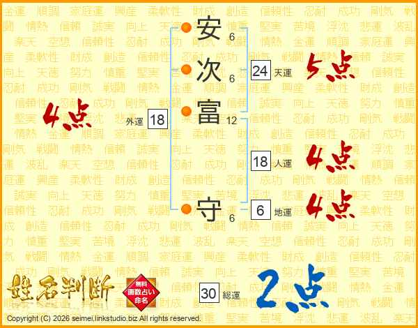 安次富守さんの総運は30画の2点!