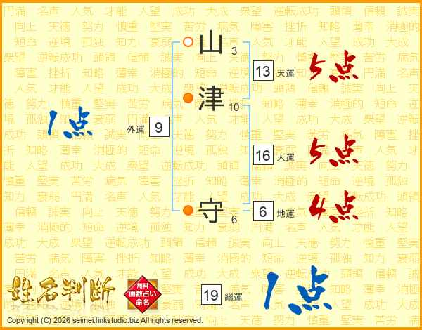 山津守さんの天運は13画の5点!