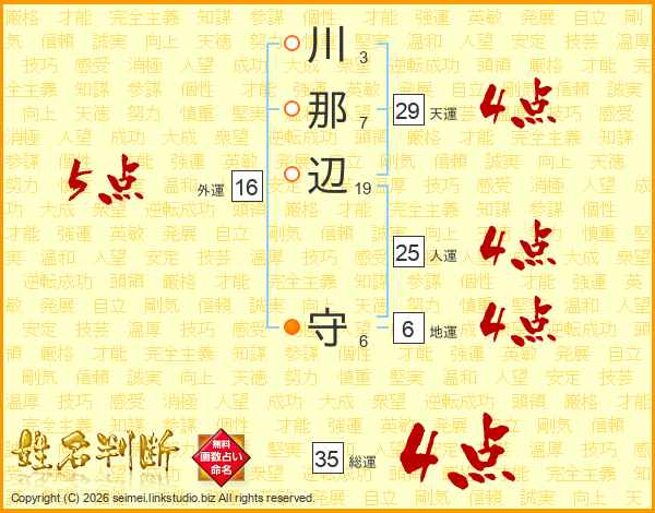 川那辺守さんの総運は35画の4点!