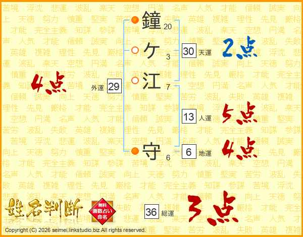 鐘ケ江守さんの天運は30画の2点!