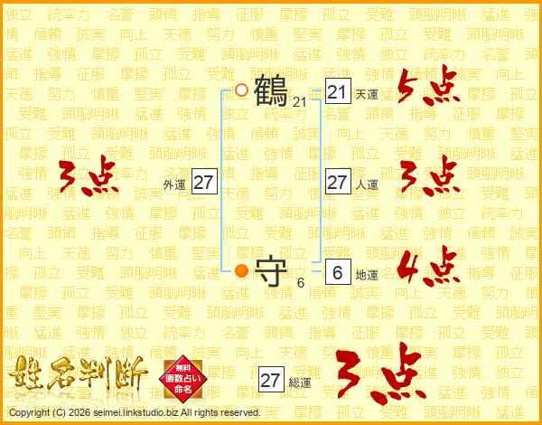 鶴守さんの総運は27画の3点!