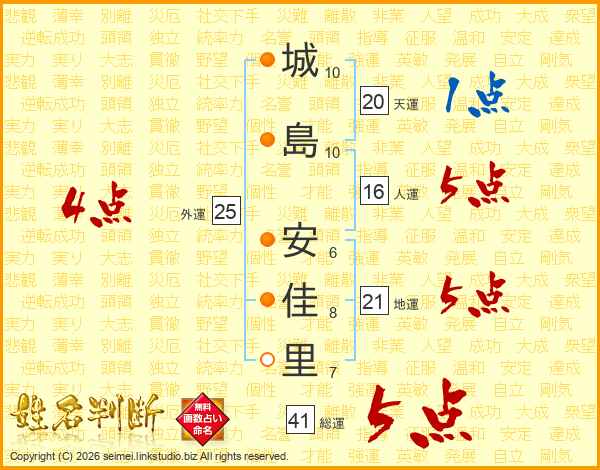 城島安佳里さんの総運は41画の5点!