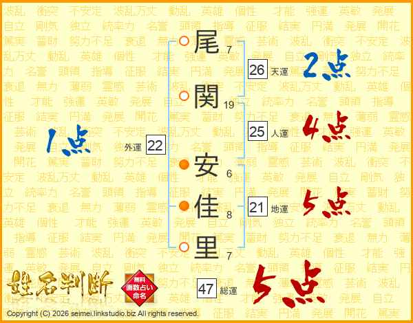 尾関安佳里さんの総運は47画の5点!
