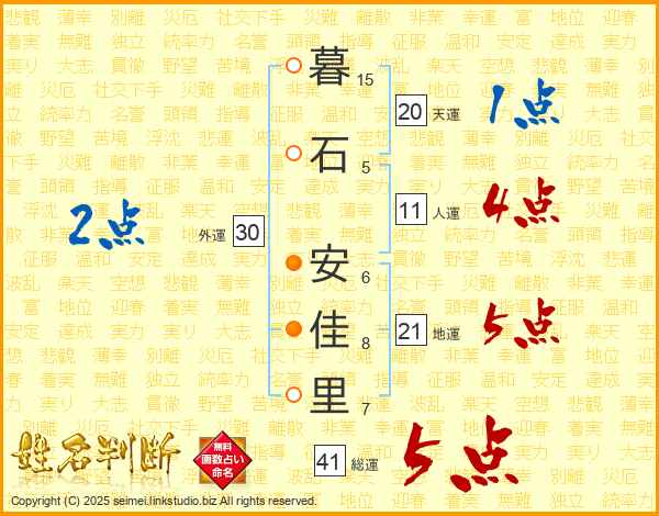 暮石安佳里さんの総運は41画の5点!