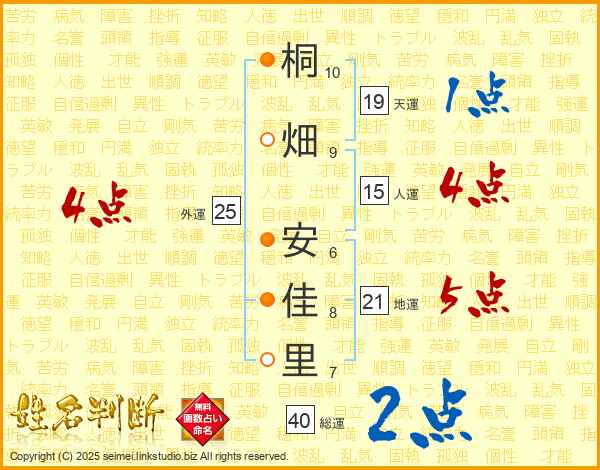 桐畑安佳里さんの外運は25画の4点!