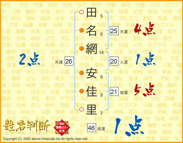 田名網安佳里さんの天運は25画の4点!