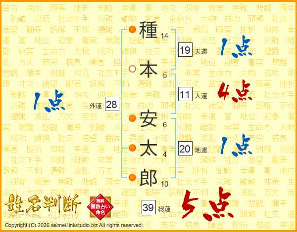 種本安太郎さんの総運は39画の5点!