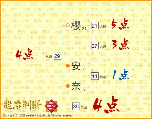 櫻安奈さんの総運は35画の4点!