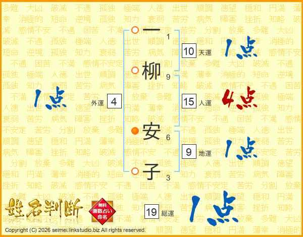一柳安子さんの総運は19画の1点!