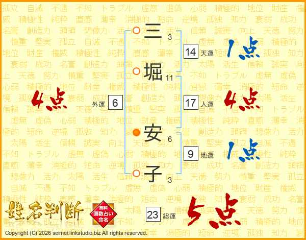 三堀安子さんの総運は23画の5点!