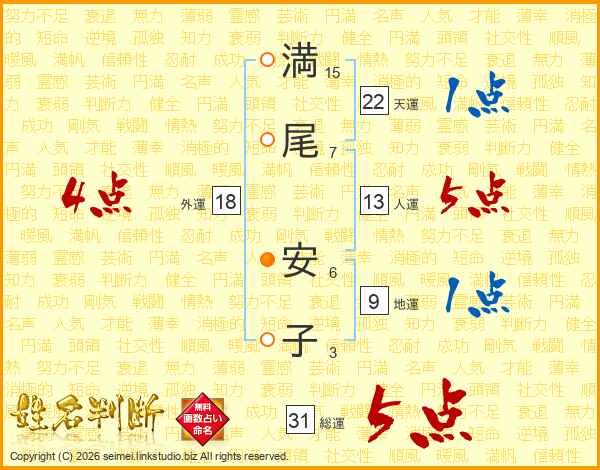 満尾安子さんの外運は18画の4点!