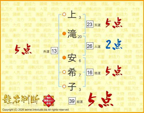 上滝安希子さんの総運は39画の5点!