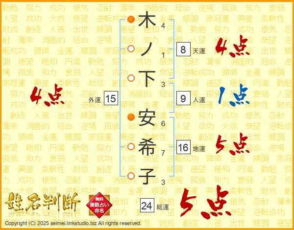 木ノ下安希子さんの外運は15画の4点!