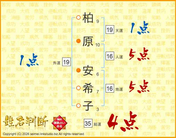 柏原安希子さんの総運は35画の4点!