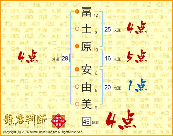 冨士原安由美さんの天運は25画の4点!