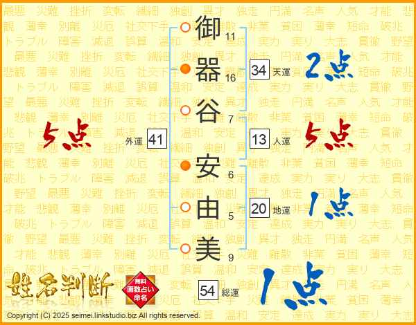 御器谷安由美さんの人運は13画の5点!