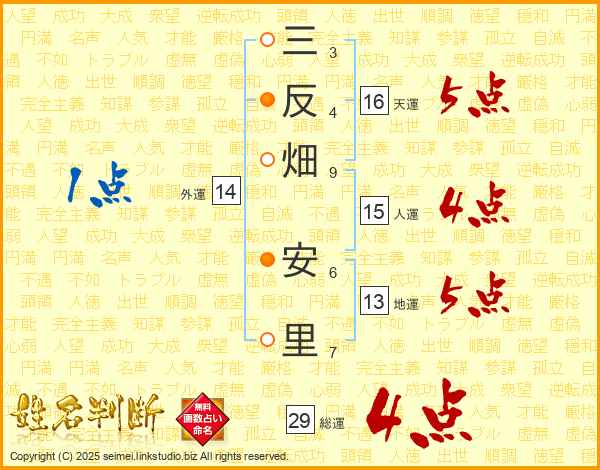 三(3画)反(4画)畑(9画) 安(6画)里(7画)