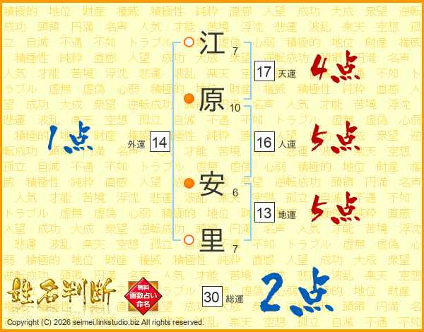 江原安里さんの総運は30画の2点!