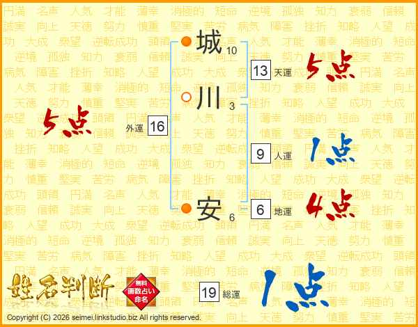 城川安さんの総運は19画の1点!