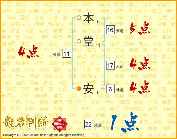 本堂安さんの総運は22画の1点!