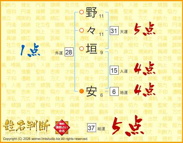 野々垣安さんの総運は37画の5点!