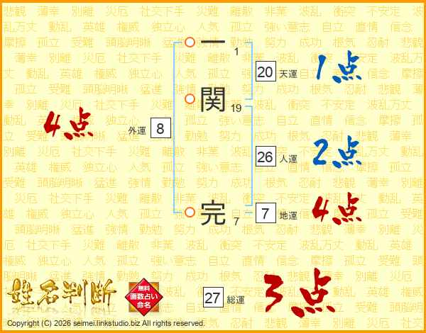 一関完さんの人運は26画の2点!