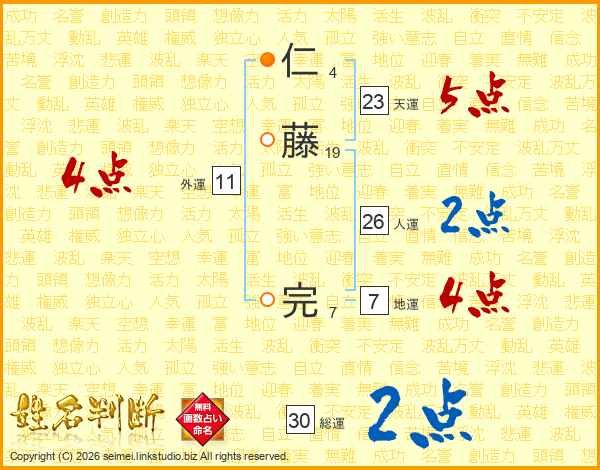 仁藤完さんの人運は26画の2点!