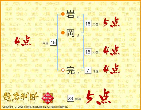 岩岡完さんの総運は23画の5点!