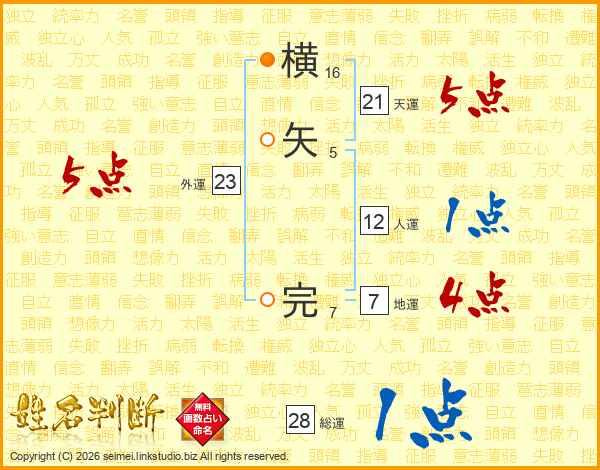 横矢完さんの総運は28画の1点!