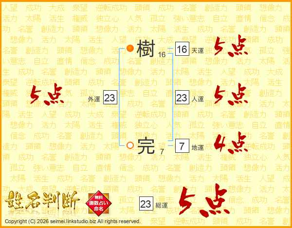 樹完さんの総運は23画の5点!
