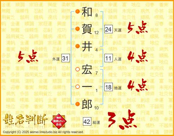 和賀井宏一郎さんの天運は24画の5点!