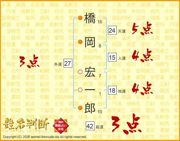 橋岡宏一郎さんの人運は15画の4点!