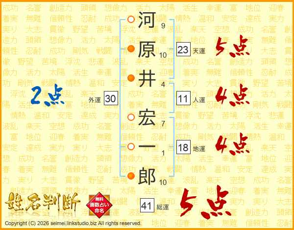 河(9画)原(10画)井(4画) 宏(7画)一(1画)郎(10画)