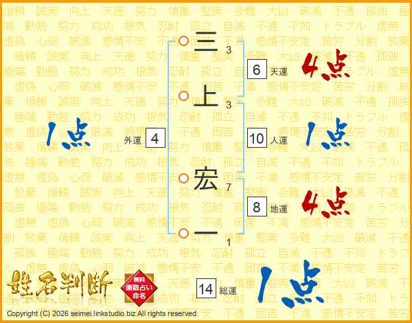 三上宏一さんの総運は14画の1点!