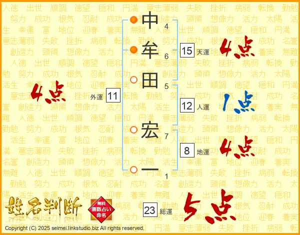 中牟田宏一さんの天運は15画の4点!