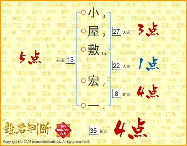 小屋敷宏一さんの総運は35画の4点!
