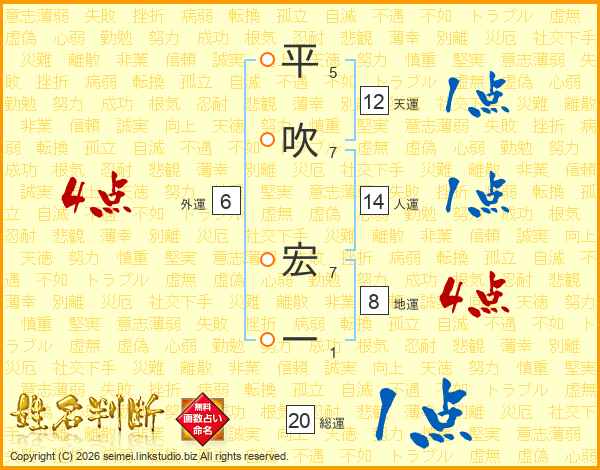 平吹宏一さんの総運は20画の1点!
