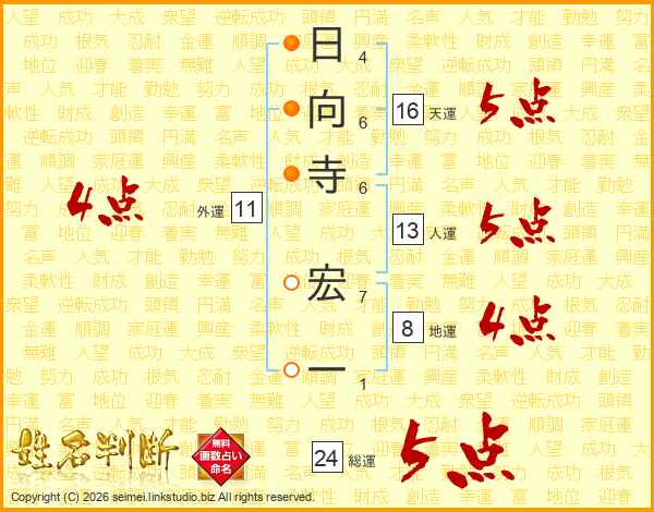 日向寺宏一さんの総運は24画の5点!