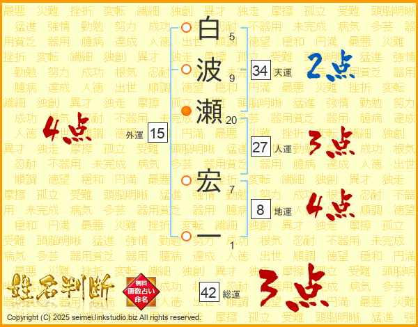 白(5画)波(9画)瀬(20画) 宏(7画)一(1画)