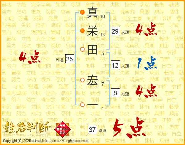 真(10画)栄(14画)田(5画) 宏(7画)一(1画)