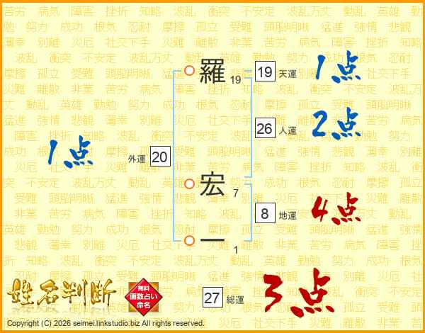 羅宏一さんの天運は19画の1点!