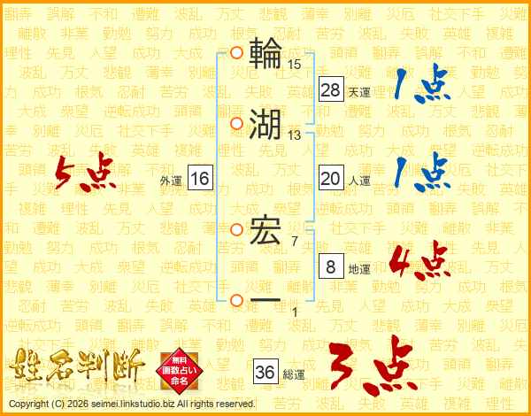 輪湖宏一さんの天運は28画の1点!