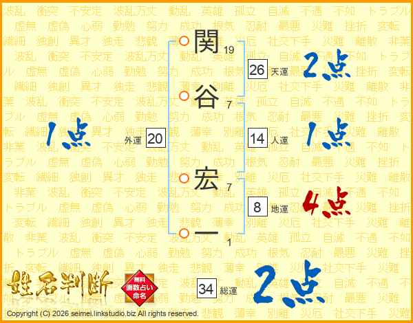 関谷宏一さんの天運は26画の2点!