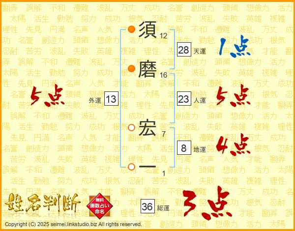 須磨宏一さんの総運は36画の3点!