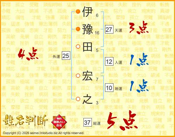 伊豫田宏之さんの総運は37画の5点!